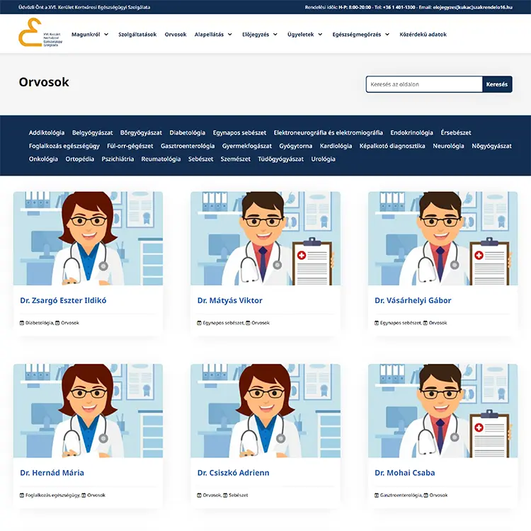 A honlapot többen is kezelik, napi szintű tartalomfrissítés van. Több tucat orvosról és szakrendelésről szükséges információt közölni, éppen ezért egy átlátható, jól strukturált felépítést kapott az admin felület.