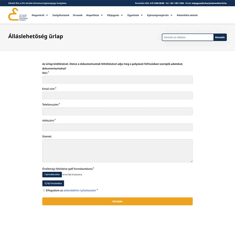 kontrolling vezető, XVI. Kerület Kertvárosi Egészségügyi Szolgálata